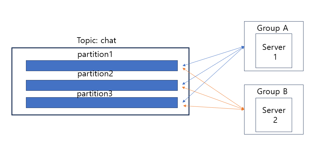 그림에서 Server1, Server2는 모두 kafka를 Listening중입니다.